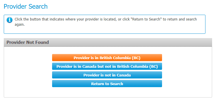 Step 5: On the next window, select "Provider is in British Columbia (BC)"