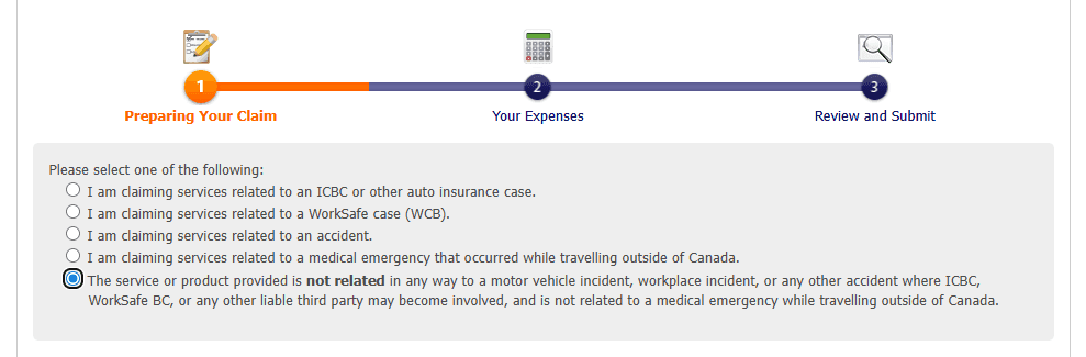 This ensures that you are in fact submitting a private claim on injuries, conditions and treatable issues that are not related to any previous ICBC or WorkSafe claim in nature.