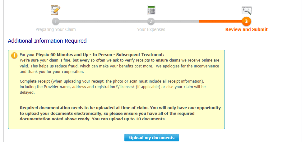 Step 8: Upload your Receipt, and follow the remaining prompts to complete your self-submission!